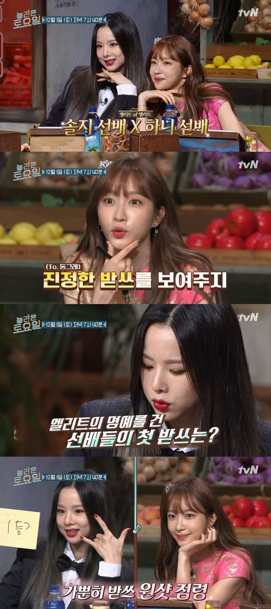걸그룹 EXID 솔지와 하니가 '놀라운 토요일'에 출연해 스튜디오를 장악한다.