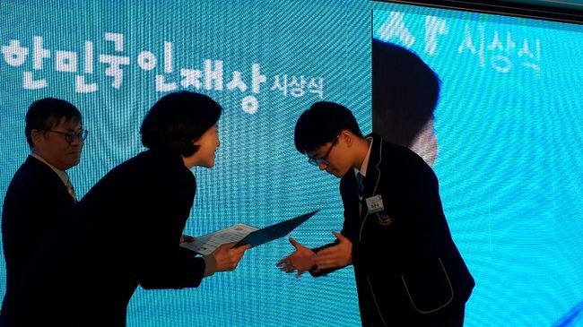 인천과학예술영재학교(교장 이원희)는 30일 하준수 군(3년)이 ‘2018 대한민국 인재상’을 수상했다고 밝혔다.
