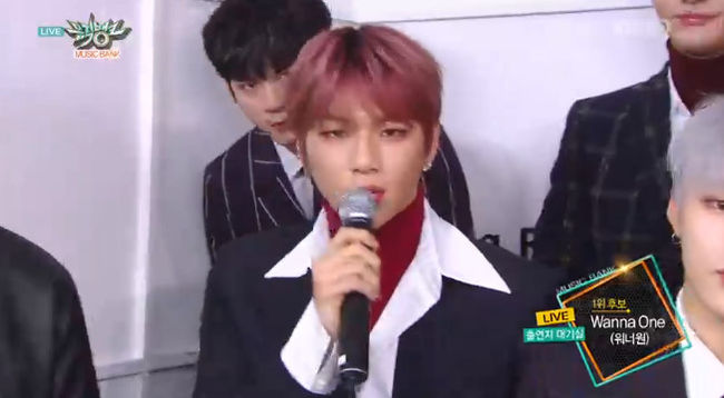 그룹 워너원이 '뮤직뱅크' 1위 후보 소감을 전했다.