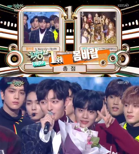 30일 방송된 KBS 2TV '뮤직뱅크'에는 워너원의 '봄바람'은 트와이스의 'YES or YES'를 제치고 1위를 차지했다. 워너원은 컴백과 동시에 1위를 차지한 것에 감사하다는 말을 전했으며, 오페라 버전 '봄바람'을 부르며 1위 공약을 이행했다.