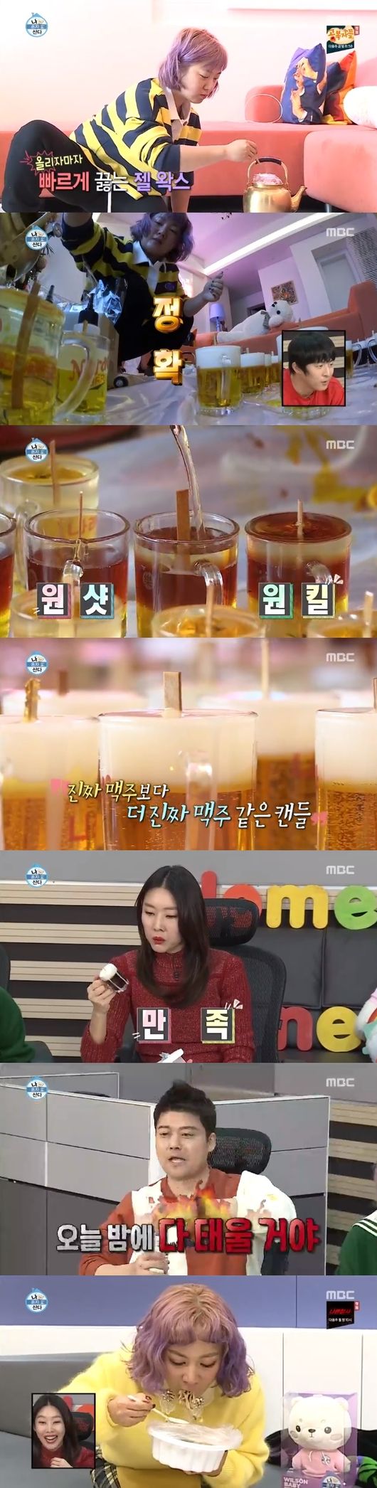 이후 박나래는 정해인을 위한 빅사이즈 맥주 캔들을 만들었고 정성스럽게 준비했다. 입맛이 없다던 박나래는 국물에 밥을 말아 깍두기 김치까지 올려 폭풍 먹방을 보였다. 국물까지 드링킹하면서 정해인을 기다렸다.
