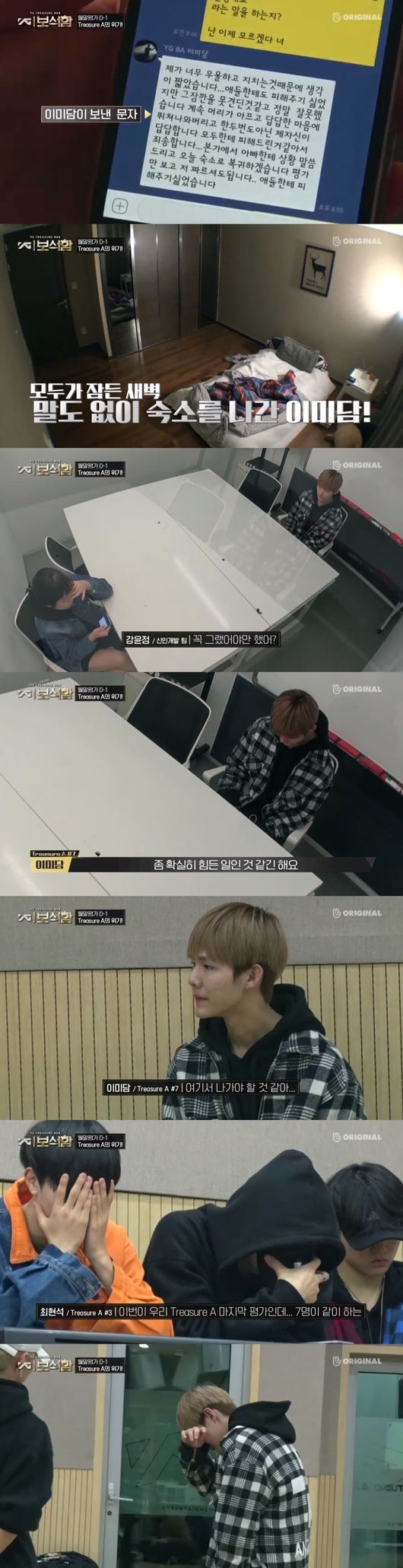 마지막으로 모두가 주목하는 트레저A에서도 역시 동일한 기준이 적용돼 '개인전'의 긴장감이 감돌았다. 트레저A는 총 7명으로 YG엔터테인먼트에서 가장 연습을 오래 한 장수 연습생들이자 에이스 멤버들이다. 연습을 하던 중 암초를 만나기도 했다. 이미담이 심적인 어려움을 겪으면서 숙소를 무단 이탈한 사건이 발생한 것. 결국 이미담은 연습생들 앞에서 "너희한테 계속 민폐만 끼치고 여기서 나가야 할 것 같아"라고 선언했다. 이미담은 "너희 다 잘 될 거야"라고 눈물로 응원했고, 오랜 시간 함께 연습하던 연습생들도 눈물을 흘리며 아쉬워했다.