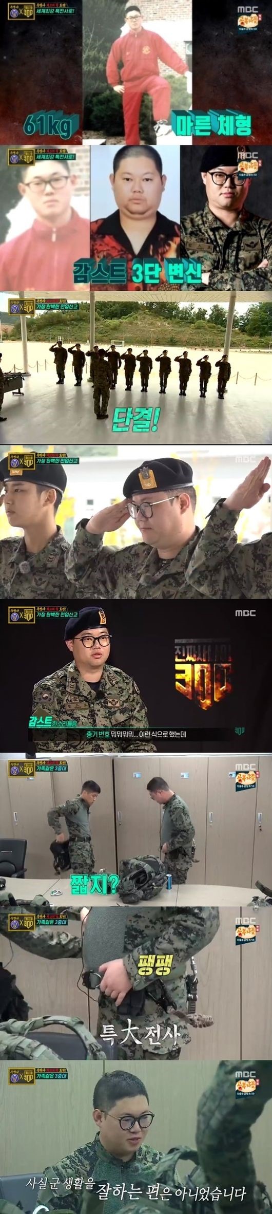 이어 화면에는 감스트의 해병대 시절 사진이 등장했고, 지금은 상상할 수 없는 마른 체형이 눈길을 끌었다. 감스트는 마른 몸매에서 몸무게 최고점을 찍었다가, 다이어트에 성공해 지금의 체형을 가지게 됐다.