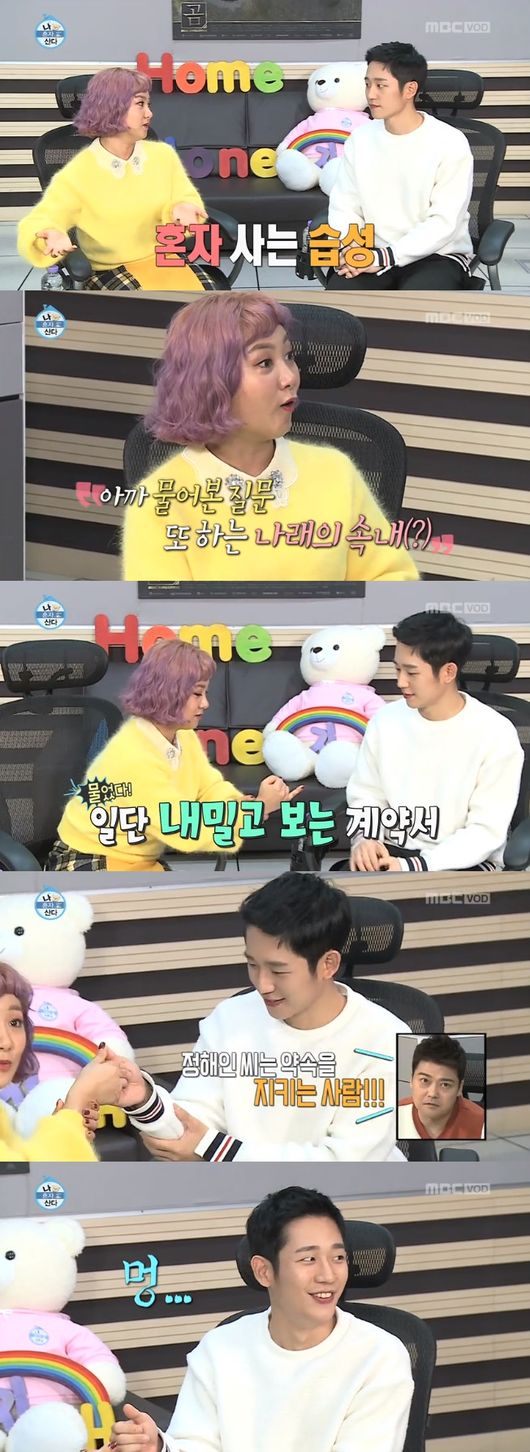 "내년 초 독립을 생각한다"는 정해인의 말에 박나래는 "'나혼자산다' 회원님으로 모시고 싶다. 약속만 하고 그냥 가신 분들이 있어서 안 나와 주시면 법적으로 조치가 들어간다. 꼭 좀 나와주시면 좋겠다"고 말했다. 이에 잠시 당황하던 정해인은 "알겠다"며 출연을 약속했다.