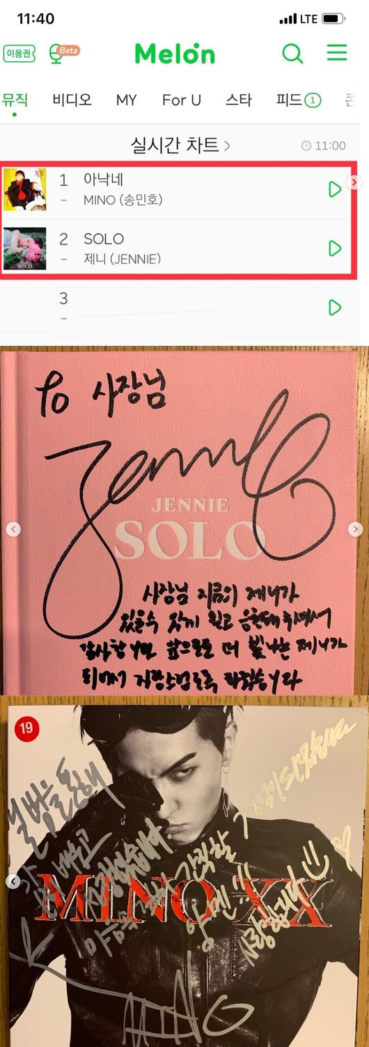 이와 관련해 YG 양현석 대표 프로듀서는 SNS를 통해 "멋진 솔로 둘"(Awesome solo duo)이라며 송민호와 제니의 선전을 축하 및 응원했다. 함께 게재된 사진에는 송민호가 음원차트에서 1위, 제니가 2위를 차지하고 있어 눈길을 끈다.