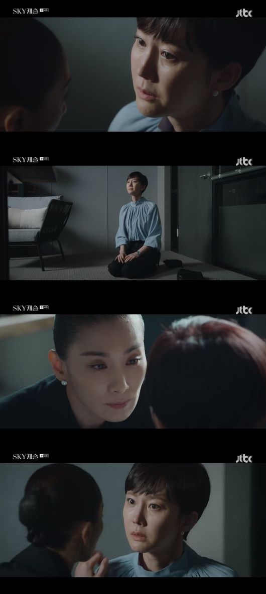 1일 오후 방송된 JTBC 'SKY캐슬'에서 김주영(김서형 분)은 다시 한서진(염정아 분)의 아이인 강예서(김혜윤 분)을 가르치기로 결정했다. 서진은 주영 앞에 무릎꿇고 애원했따.