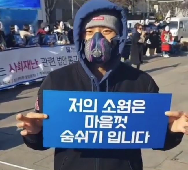 영상 속 산이는 "제가 오늘 광화문에 온 이유는 제가 설명하는 것보다 여러분이 직접 보시면 더 알기 빠를 거예요"라며 집회의 모습을 공개했다. 산이는 미세먼지 집회 모습을 영상으로 담았다. 산이는 방독면을 쓴 채입니다'라고 쓰여진 플래카드를 들고 있다. "맑은 공기를 마시는 것은 정말 기본적인 권리"라고도 이야기한다.