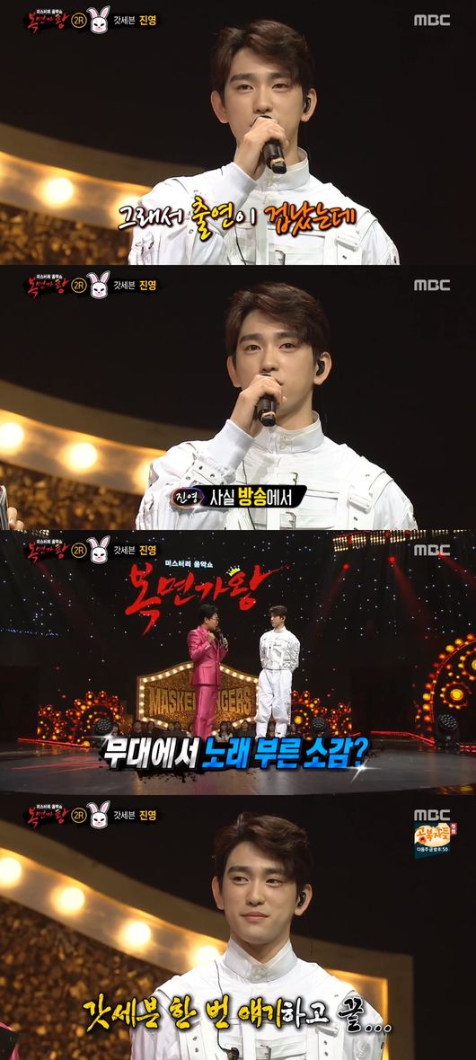 복면을 벗고 무대에 선 할리우드 토끼는 갓세븐의 '비주얼 센터' 진영이었다. 진영의 등장에 관객들은 모두 쓰러질 듯 환호했다.