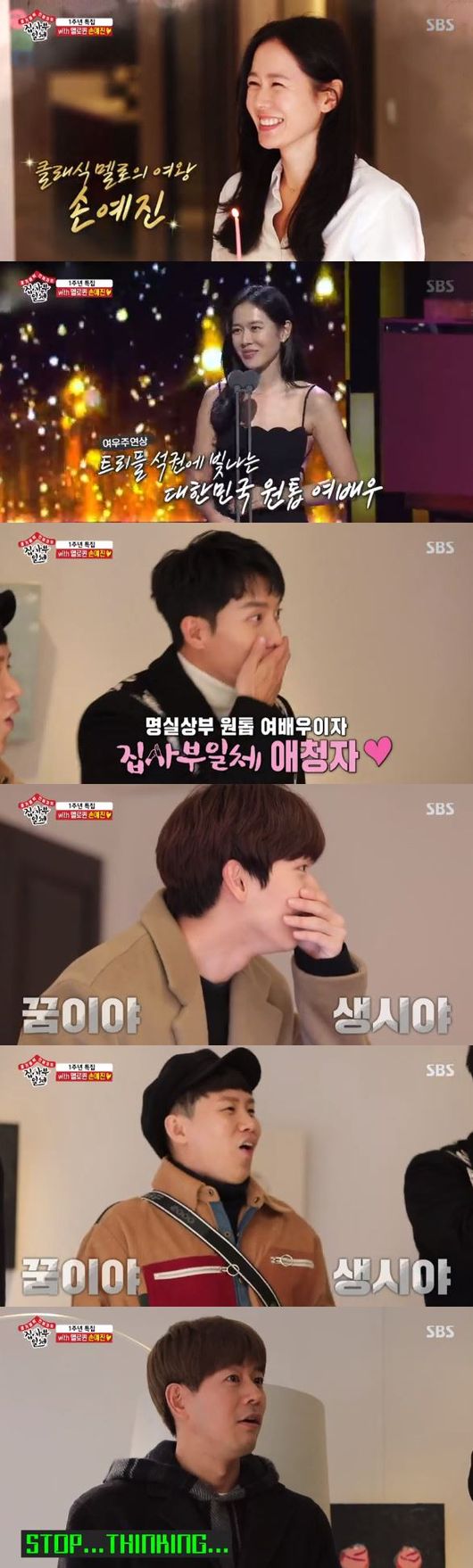 놀란 상승형재는 말을 잇지 못했고 손예진은 "집에서의 촬영은 처음이다. 너무 재밌게 보고 있었다"면서 "사부는 안 어울린다고 생각해서 1주년에 선물 같은 시간을 드리고 싶어 출연했다. 저 또한 여러분들과의 시간이 너무 기대되고 설렜다. 사부를 내려놓고 MT를 가서 놀자. 사부는 부담스럽다"고 이야기했다.