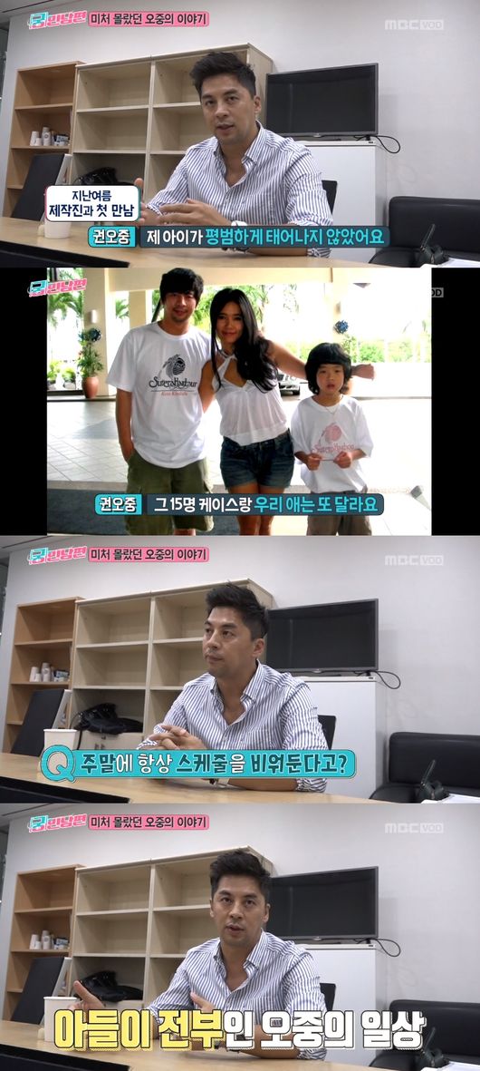 특별한 권오중의 아들의 친구는 오직 아빠 뿐이었다. 유일한 친구인 아빠 권오중은 아들을 위해서 금요일 저녁부터 토요일과 일요일에는 스케줄을 잡지 않는다. 권오중은 "아들이 학교다닐때부터 대인관계가 안됐다. 항상 같이 있는 건 아빠다. 아들이기 때문에 아빠랑 할 수 있는게 많다. 그때부터 아들이 뭘하면 행복해하지 뭘 하면 즐거워하지를 끊임없이 생각했다"고 설명했다.