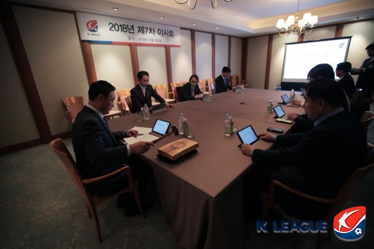한국프로축구연맹은 3일 서울 홍은동 그랜드힐튼호텔에서 제7차 이사회를 열어 ▲아산무궁화의 시민구단 전환에 대한 유예기간 부여 ▲아시안컵 대표팀 조기소집 요청에 대한 승인 ▲부정-불법행위에 대한 신고 의무화 ▲음주운전에 대한 징계 강화 ▲K리그 주니어 U18 후기대회 개편 및 U15대회 신설 ▲K리그 챔피언십 U12 대회 신설 등을 의결했다.