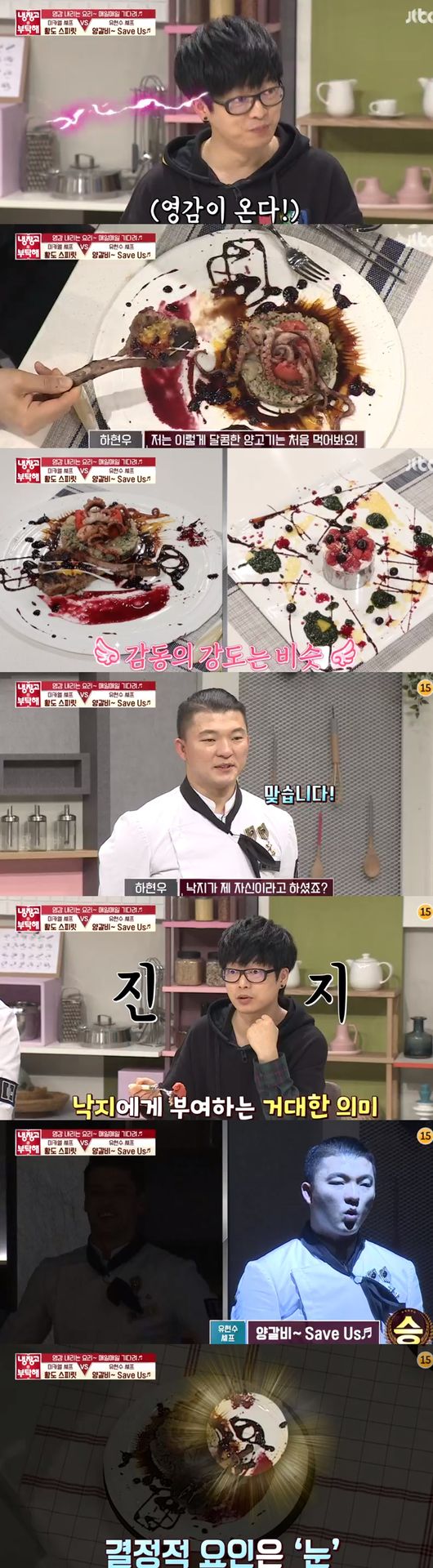 이날 하현우는 유현수의 양갈비 구이를 선택했다. 국카스텐 팬인 유현수가 요리를 통해 다양한 심볼을 표현해 하현우를 놀라게 했다. 하현우는 "저는 이렇게 달콤한 양고기는 처음 먹어본다. 맛이 재밌어요"라고 말했다. 이어 "태양 폭발 같은 강렬함이 있다. 국카스텐 심볼 마크도 표현했다"고 만족스러워했다.