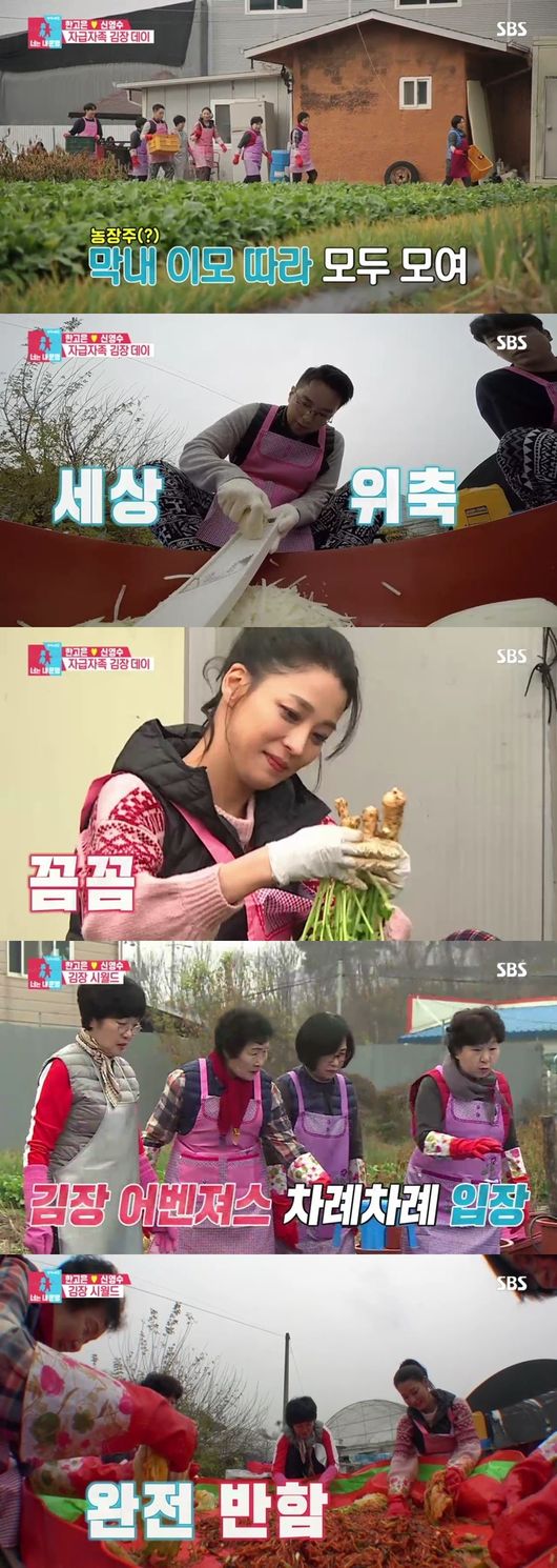 한편, 이날 한고은은 남편 신영수와 함께 안성의 이모님 댁으로 향했다. ‘김장 DAY’ 였던 것. 이에 한고은은 "어머님과 이모님들이 1년에 한 번씩 모이는 일종의 축제"라고 설명했다. 김장에 앞서 신영수는 의문의 상자를 이모들 앞에 내놓았다. 신영수는 현직 MD답게 몸빼바지 부터 귀마개, 장갑, 앞치마 등 김장에 필요한 물품들을 모두 준비했고, 이모들은 "센스 있다"며 감탄했다. 한고은과 이모님들로 이뤄진 김장 어벤져스는 함께 밭으로 이동했다. 막내 이모님이 손수 키운 쪽파며 재료를 뽑는 것부터 시작된 가운데 한고은은 처음이라 믿기 힘든 능숙한 솜씨로 시선을 모았다.