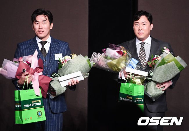 허경민(두산)과 안치홍(KIA)가 조아바이톤상을 수상했다.