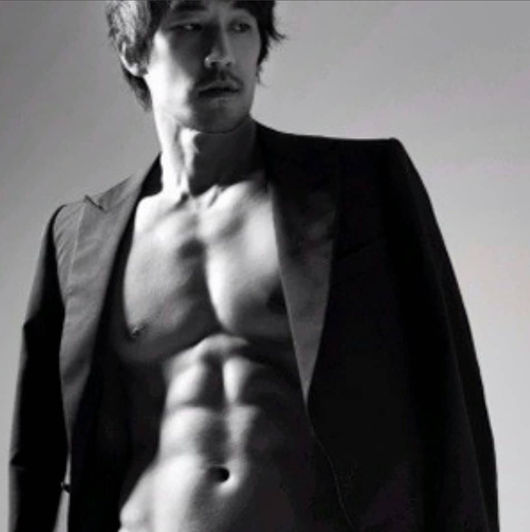 사진은 과거 한정수의 몸매가 탄탄했을 당시의 사진으로 초콜릿 복근을 자랑하고 있다.
