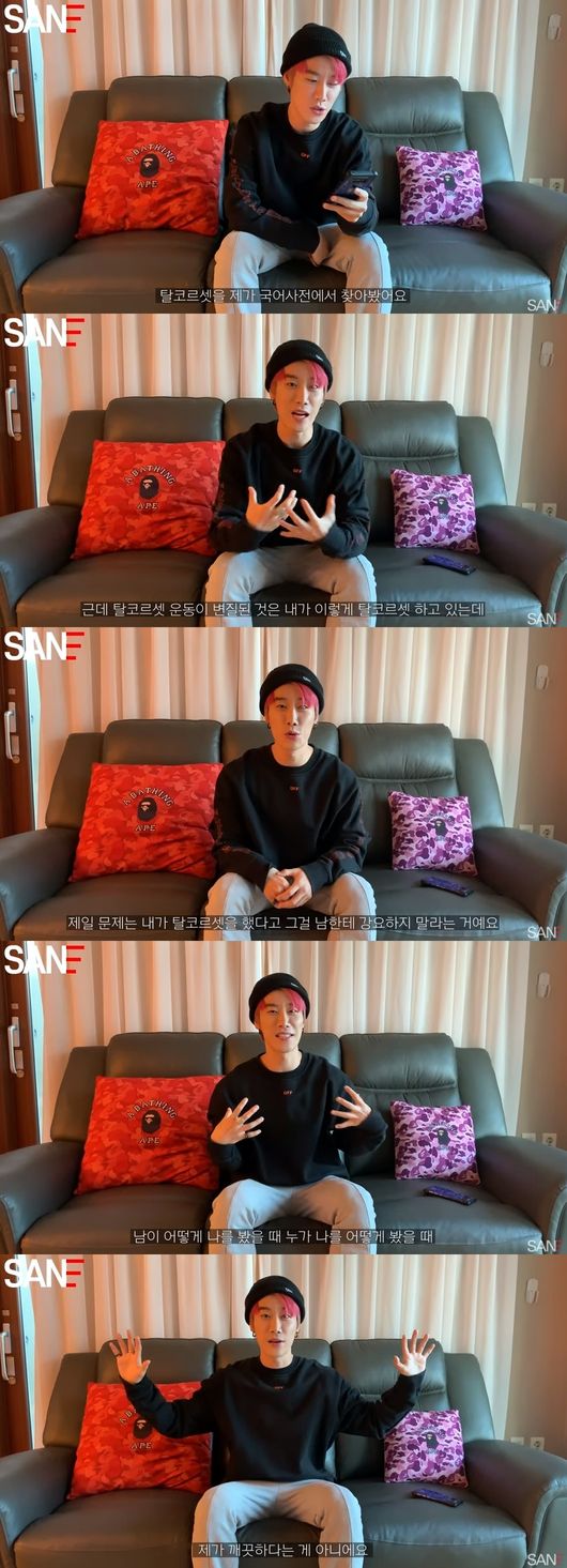 산이는 5일 자신의 유튜브 계정에 '저 탈코르셋 지지합니다'라는 제목의 영상을 게재했다. 그는 남의 시선을 의식해 억지로 꾸미지 않을 것을 주장하는 사회적 운동인 '탈코르셋 운동'을 언급하며 "전혀 틀린 말이 아니다. 오히려 지지한다"고 입장을 밝혔다.
