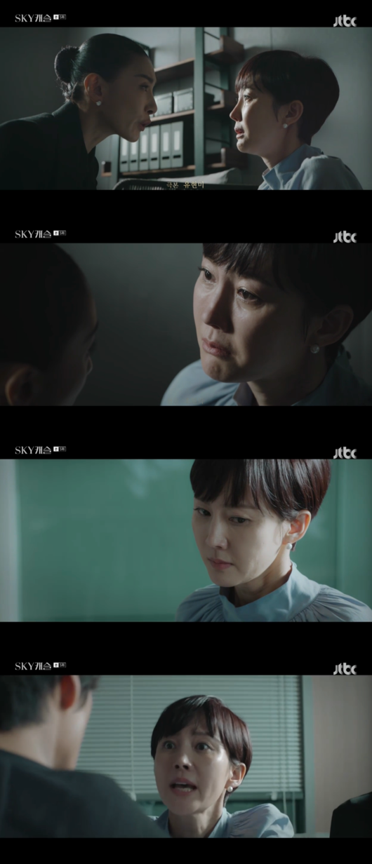 지난 7일 오후 방송된 종합편성채널 JTBC 금토드라마 ‘SKY 캐슬’(극본 유현미, 연출 조현탁)에서는 한서진(염정아 분)이 남편 강준상(정준호 분)의 인사청탁을 위해 시어머니인 윤여사(정애리 분)를 찾아가는 장면이 그려졌다.