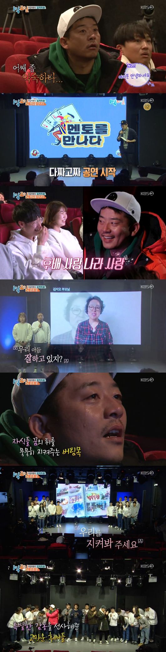 하지만 김준호의 꿈은 여기에서 끝나지 않았다. 안대를 끼고 다음 장소로 이동한 멤버들은 한 극장에 도착했다. 이곳은 김준호의 극장으로 후배 개그맨 연습생들이 김준호의 또 다른 꿈 ‘후배들과 한 무대에서 오래오래 행복하게 공연하는 것’을 이뤄주기 위해 뭉쳤다.