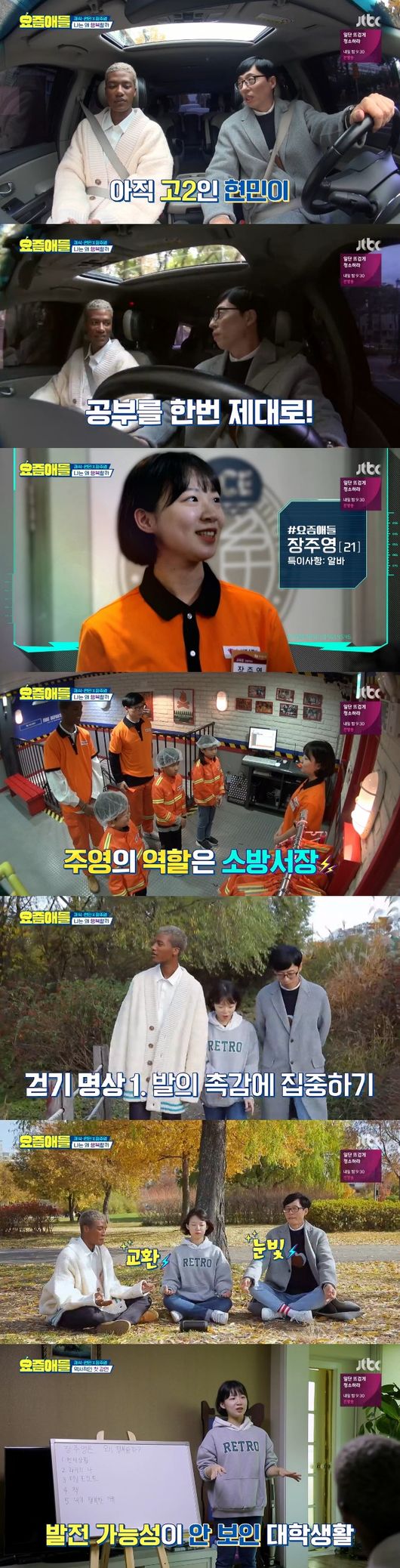 9일 오후 방송된 JTBC ‘요즘애들’에서는 유재석-한현민, 안정환-하온, 김신영-슬기 3팀이 각자 선택한 ‘요즘 애들’과 만나 그들의 일상에 들어가 보는 모습이 그려졌다.