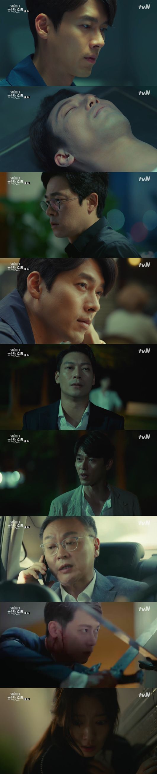 그런데 순간 차형석이 유진우에게 칼을 휘둘렀다. 유진우는 차형석의 칼에 찔렸고 치명상을 입었다. 두 사람은 칼로 팽팽히 맞섰고 유진우는 계단에서 떨어질 위기에 취했다. 한국에서 온 전화를 받고서 유진우의 방에 올라가던 정희주는 갑자기 계단 아래로 떨어진 칼을 보며 크게 놀랐다.