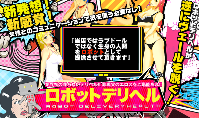 '로봇 데리헬스'라고 불리우는 이 업체는 영어로 배달의 의미하는 Delivery (딜리버리)의 일본식 영어 약어인 ‘데리’와 소프트한 유사 성행위 서비스를 의미하는 ‘헬스’의 조합어로서 호텔에 머물고 있는 남성 고객에게 섹스 로봇을 배달해 주는 매춘 서비스를 의미한다.