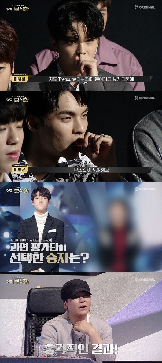 이어진 결과 발표에서 트레저 메이커 관객석과 연습생들은 물론이고, YG 양현석 대표 프로듀서까지 충격의 탄성을 금치 못했다. 양 대표는“의외의 결과가 나와서 더 놀랐습니다”라고 코멘트하며 투표 결과에 더욱 궁금증을 모았다.