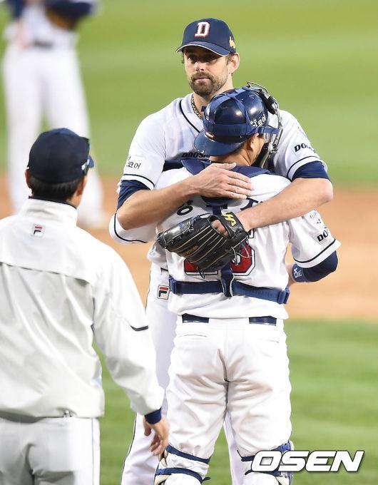 메신저가 한신과 국내 선수 자격으로 계약을 체결한 날, 한국에선 그와 같은 나이인 더스틴 니퍼트(37)가 화제가 됐다. 이날 KBO 골든글러브 최다득표 수상을 한 양의지가 소감으로 니퍼트를 언급하며 눈물을 글썽였기 때문이었다. 니퍼트는 지난 2011년 두산에서 KBO리그에 데뷔, 지난해까지 7년을 뛰며 양의지와 배터리 호흡을 맞췄다. 올해 8년차 시즌은 KT에서 보냈다.