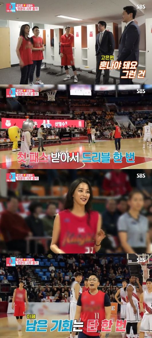 잔뜩 긴장한 신영수는 한고은과 함께 전동 킥보드를 타고 코트 안으로 들어섰다. 신영수는 긴장된 와중에도 사방으로 인사를 해 웃음을 자아냈다. 한고은의 패스를 받은 신영수가 공을 던졌지만, 두 번째 시도까지 모두 실패를 해 안타까움을 샀다. 이를 바라보고 있던 스튜디오의 모든 이들이 "어떡햬"를 외치며 마지막 시도에서만큼은 성공을 하길 바라고 또 바랐다.
