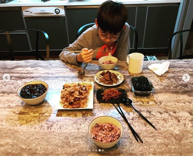 사진 속에는 강경준이 독감에 걸린 아들을 위해 잔치국수를 비롯해 김치볶음밥, 거기다 팬케이크까지 구워주는 훌륭한 아빠의 모습을 보여 눈길을 끈다.