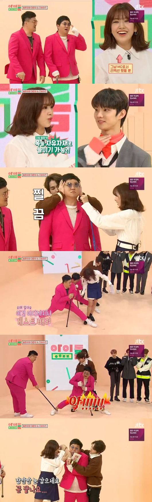 지난 11일 오후 방송된 JTBC 예능 프로그램 '아이돌룸'에서는 비투비 정일훈과 아이즈원 안유진이 스페셜 MC로 나선 가운데, 형돈이와 대준이가 그룹 더보이즈와 대결을 펼치는 모습이 그려졌다.