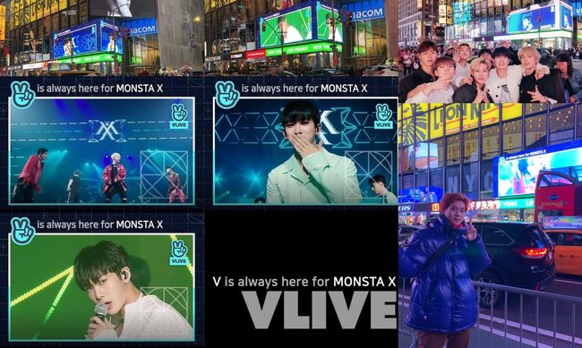 네이버 V 라이브 측은 최근 공식 SNS 채널에 뉴욕 타임스퀘어를 장식한 몬스타엑스의 옥외 전광판 사진을 게재하며 눈길을 사로잡았다.