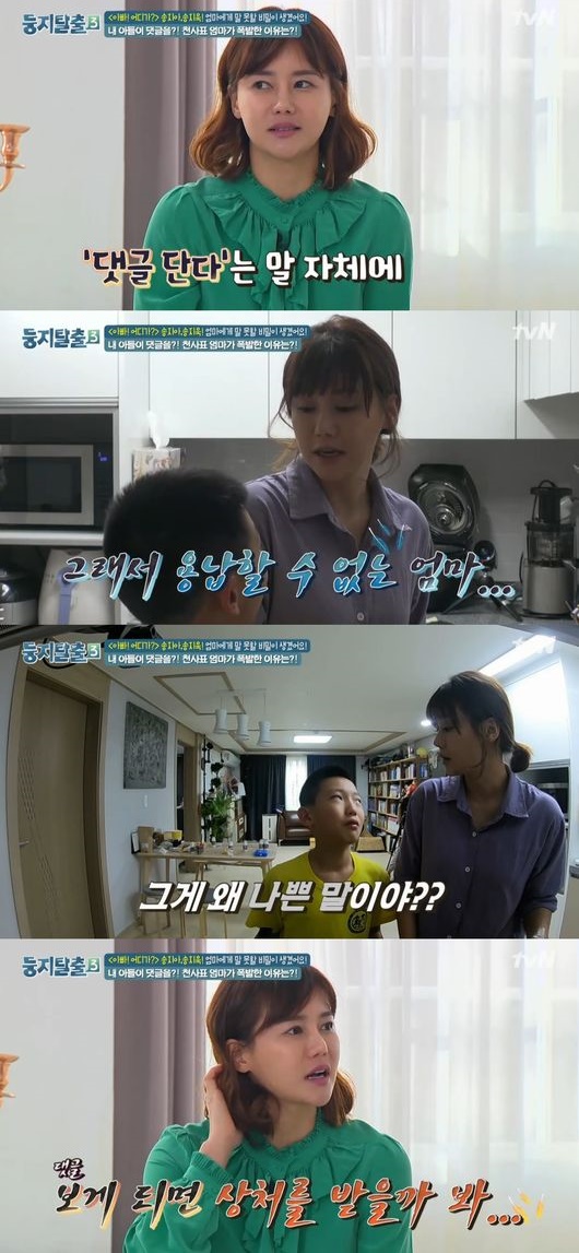 박연수는 '댓글'을 '악플'로 착각해 송지욱을 혼냈던 것. 영문을 모르는 송지욱은 "댓글이 왜 나쁜 거야? 어차피 달 줄도 몰랐어"라며 눈물을 흘렸고, 오해가 풀린 박연수도 미안한 마음에 아들을 꼭 안아줬다.