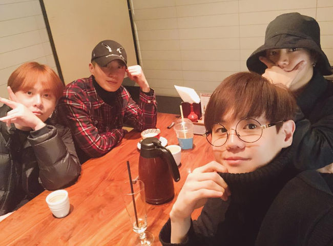 용준형은 12일 자신의 SNS에 “간만에 같이 엄청 웃었지”라는 글과 사진을 게재했다. 사진 속에는 휴가 나온 윤두준을 비롯해 용준형, 이기광, 양요섭이 함께 있는 모습이다. 손동운은 함께 하지 못한 모습이다.