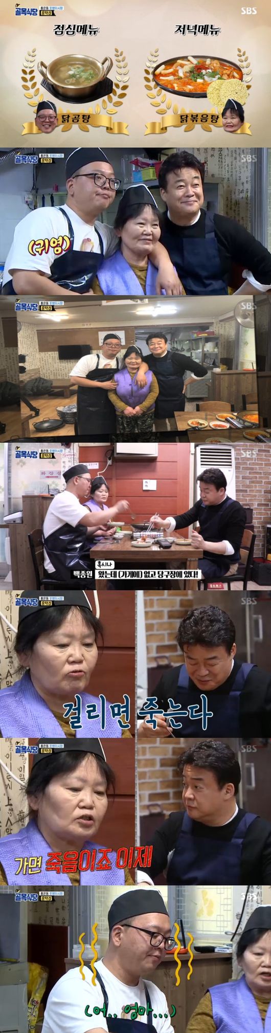 백종원이 아들을 찾아갔다. 이번엔 감자탕용 전골냄비를 전했다. 순차적으로 먹을거리를 제공할 수 있는 메뉴를 함께 고민했다. 백종원은 함께 예행연습을 해보자고 했다. 닭볶음탕 마지막은 볶음밥이 아닌 라면사리나 칼국수를 추천, 닭곰탕 육수를 적극 활용해 라면사리 주문시 그 육수를 사용하자고 했다. 닭볶음탕에 닭곰탕 육수까지 더해 더 감칠맛나고 얼큰한 육수가 됐다. 군침도는 어머니표 김치까지 화룡정점을 더했다.