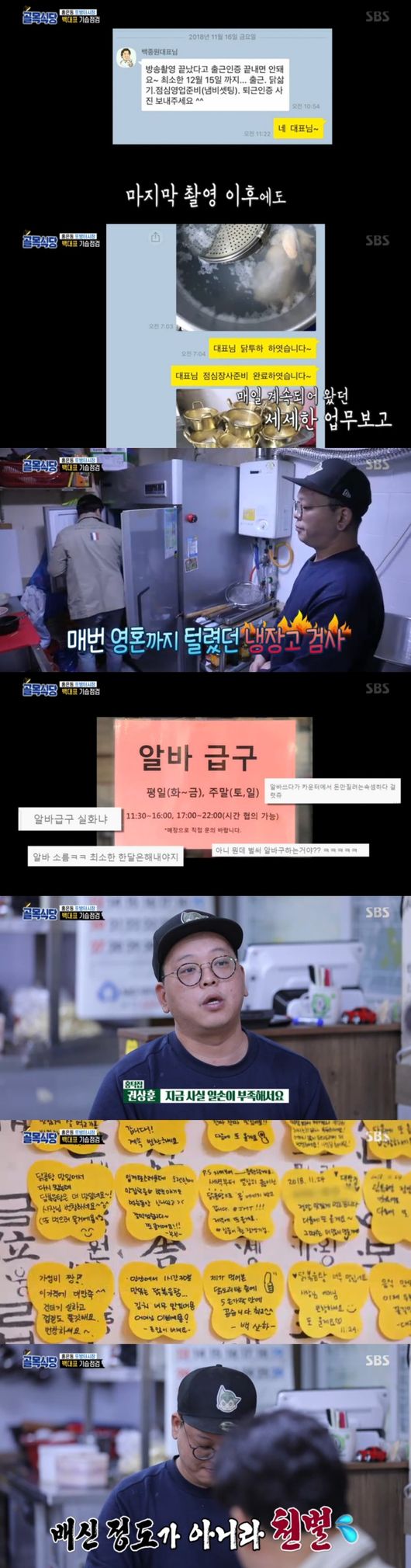 백종원은 "이제 카메라 철수다, 그래도 카메라보다 무서운 주변인의 눈이 있다"고 언제나 긴장하라고 했고,