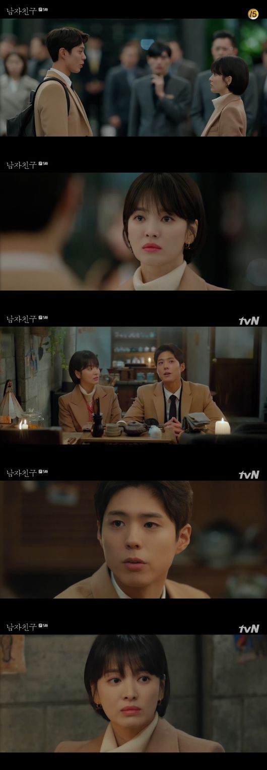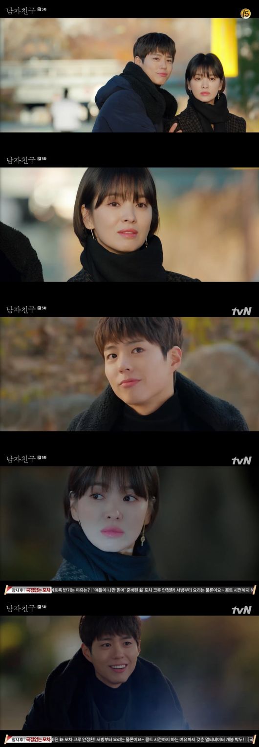 지난 12일 방송된 tvN 수목드라마 ‘남자친구’(극본 유영아, 연출 박신우) 5회에서는 수현(송혜교 분)과 진혁(박보검 분)이 서로를 향한 마음을 확인하는 내용이 그려졌다.