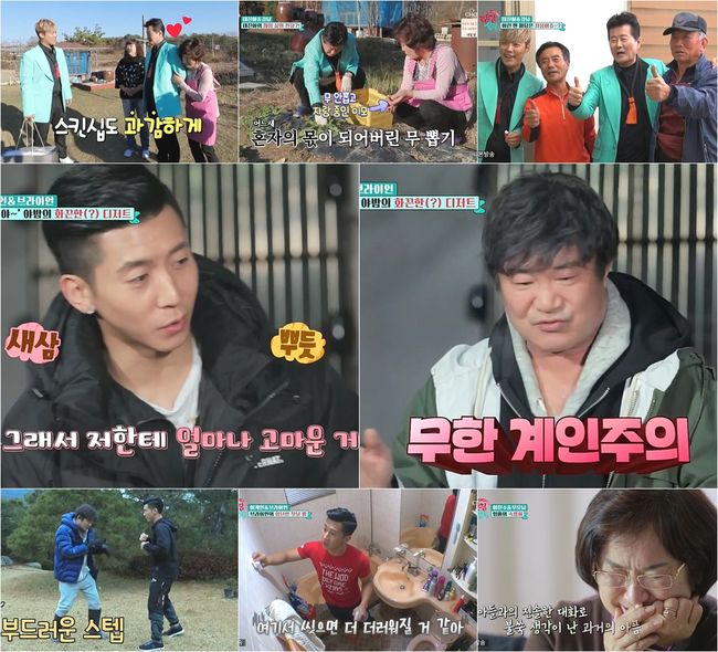 그런가 하면, 태진아-강남 부자는 강남 어머니의 생일 파티를 위해 강남 이모댁에 방문했다. 태진아를 만난 강남 이모들은 “실물이 너무 멋지시다! 선생님 뒤만 졸졸 따라다녀야지”라며 버선발로 마중했다. 그러나 이도 잠시, 태진아는 강남 이모들 성화에 김장 일손을 돕기 시작했다. 허리를 펼 새도 없이 배추, 무 뽑기에 매진해 웃음을 자아냈다. 더욱이 태진아의 방문 소식으로 온 동네가 들썩였다. 팬들로 문전성시를 이루자 태진아는 사진 촬영은 물론 깜짝 악수회로 팬 서비스에 사력을 다하는 ‘슈퍼스타’의 면모를 뿜어냈다. 한편, 방송 말미 강남의 어머니가 등장을 알려 다음주 펼쳐질 서프라이즈 생일 파티에 기대감을 자아낸다.