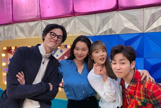 사진에는 지난 12일 방송된 MBC ‘라디오스타’에 출연한 장윤주, 김원중, 홍진영, 딘딘이 인증샷을 찍고 있는 모습이 포착돼 있다. 이들은 MC 김구라, 윤종신과도 인증샷을 찍으며 화기애애한 분위기를 드러내고 있다.