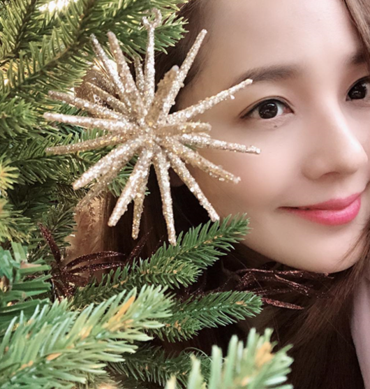 사진에는 눈이 쌓인 길가 풍경과 크리스마스 트리가 함께 담겨져 있다. 또한 유진은 크리스마스 트리 옆에 밀착해 미모를 뽐내고 있다. 크리스마스 트리의 별 장식품보다 유진의 매끄러운 피부와 날렵한 턱선이 눈길을 끈다.