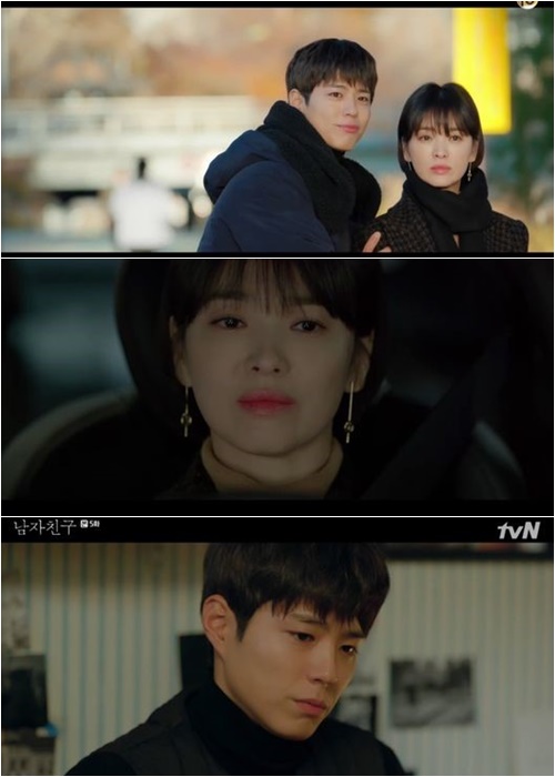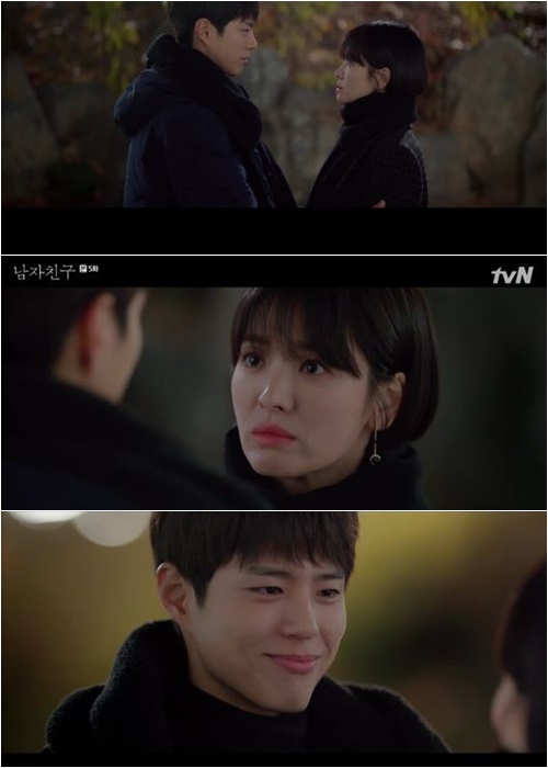 지난 12일 방송된 tvN 수목드라마 '남자친구'(극본 유영아, 연출 박신우) 5회에서는 수현(송혜교 분)과 진혁(박보검 분)의 관계에 본격적으로 변화가 생겼다. 동화호텔 로비에서 자신이 스캔들 주인공이라고 당당히 밝힌 진혁에 이어 수현 역시 "썸 타는 관계로 만나자"는 진혁의 말에 동의한 것.