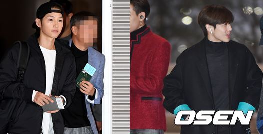 [OSEN=인천공항, 김형도기자] 배우 송중기와 가수 갓세븐이 13일 오전 '2018 MAMA in Hongkong' 참석차 인천국제공항을 통해 출국하고 있다.