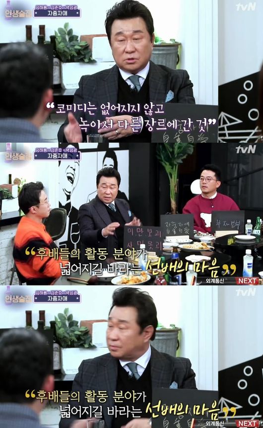 임하룡은 14일 방송된 tvN '인생술집'에 출연해 코미디에 대한 자신만의 확고한 철학을 공개했다.