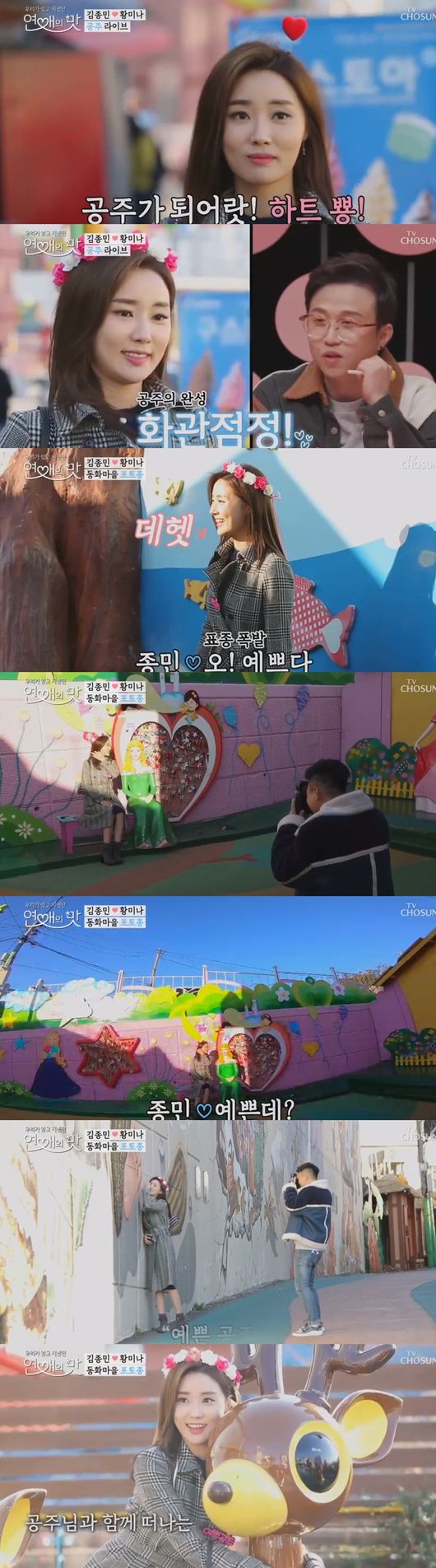 그런가하면 화보촬영 이후 두 손을 꼭 잡는 것에 익숙해진 '종미나 커플'은 연인들의 데이트 핫 플레이스로 떠오른 동화마을로 향했다. 김종민이 "오늘은 사진 데이야"라는 말과 함께 '미나 전용 포토그래퍼'로 변신했다.