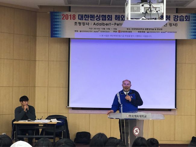 초청지도자 아다벌트는 1976 몬트리올 올림픽, 1980 모스크바 올림픽과 1984 로스엔젤레스 올림픽에도 참가한 바 있다. 1981 세 계선수권대회에서 은메달을 획득한 우수 선수로 선수 은퇴 후에는 여러 차례의 올림 픽 솔리다리티 코치 강습회와 국제펜싱연맹 국제 트레이닝 캠프에 플뢰레 코치로 활동한 바 있는 국제적인 지도자입니다.