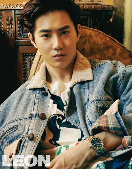수호는 젊음이 느껴지는 화려한 데님 자켓을 입고 부드러운 카리스마의 화보를 완성했다.