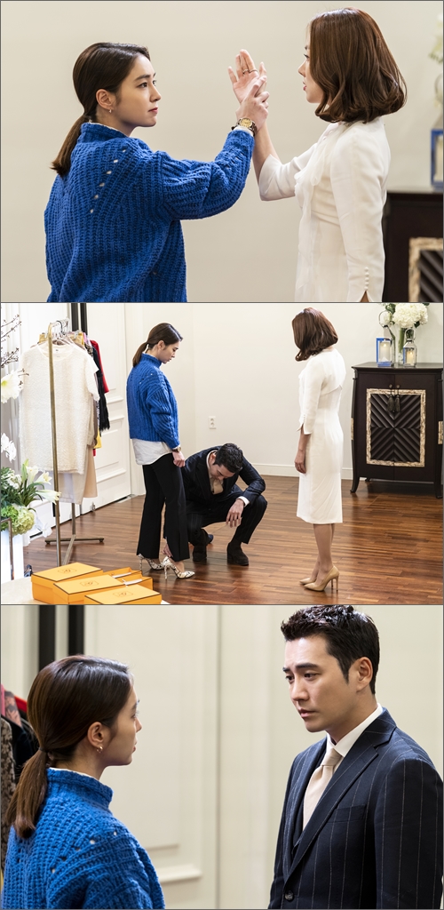 그러나 구해라 역시 호락호락하지 않다. 구해라가 입술을 꽉 깨문 채 차수현의 손을 '턱' 잡아 제지한다. '절대 지지 않겠다'는 듯 차수현을 매섭게 쏘아 보는 구해라의 눈빛에서 향후 두 여자의 만만치 않을 파워 게임을 예상할 수 있다. 그러나 우아하게 정장을 차려입은 인기 아나운서 차수현과 행사 요원답게 캐주얼 파란 스웨터 차림을 한 구해라를 통해 신분의 우열 관계가 명확하게 느껴져 씁쓸한 여운이 남는다.