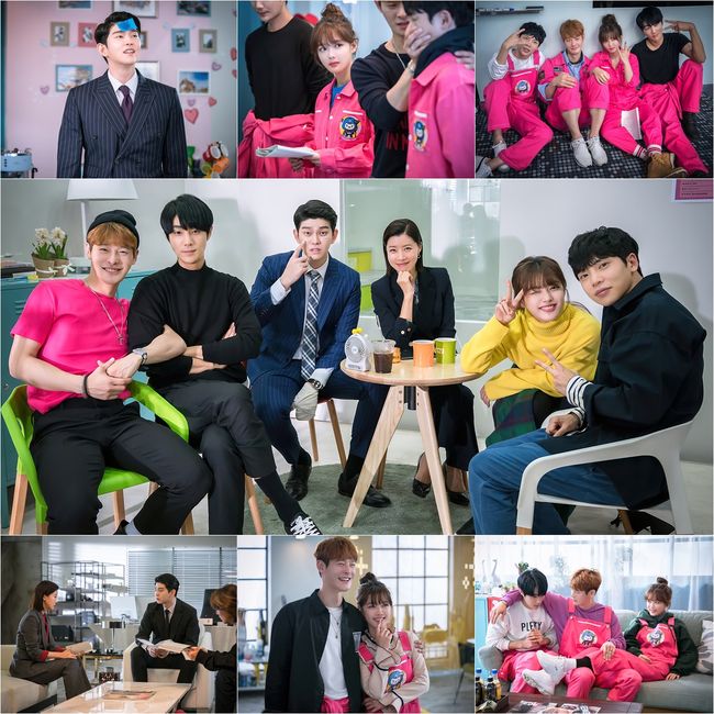 극 중 시크함으로 무장한 윤균상의 반전 매력도 포착됐다. 기름종이를 이마에 붙이고 장난스러운 미소를 짓는 모습은 반전 소년美로 ‘심쿵’을 유발한다. 뿐만 아니라 초집중 모드에 돌입해 유선과 대본을 맞춰보는 모습에서는 그의 연기 열정이 고스란히 전해진다. 이어진 사진 속 ‘케미요정’ 김유정의 만찢 비주얼도 눈길을 끈다. 명불허전 ‘러블리’ 미소를 발산하며 청소의 요정 3인방과 남다른 꿀케미를 선보이고 있는 김유정. 꽃미소를 풀장착한 훈훈한 인증샷부터 자유분방한 모습까지 특유의 긍정 에너지로 촬영장을 밝히는 김유정의 모습은 엄마 미소를 절로 자아낸다.