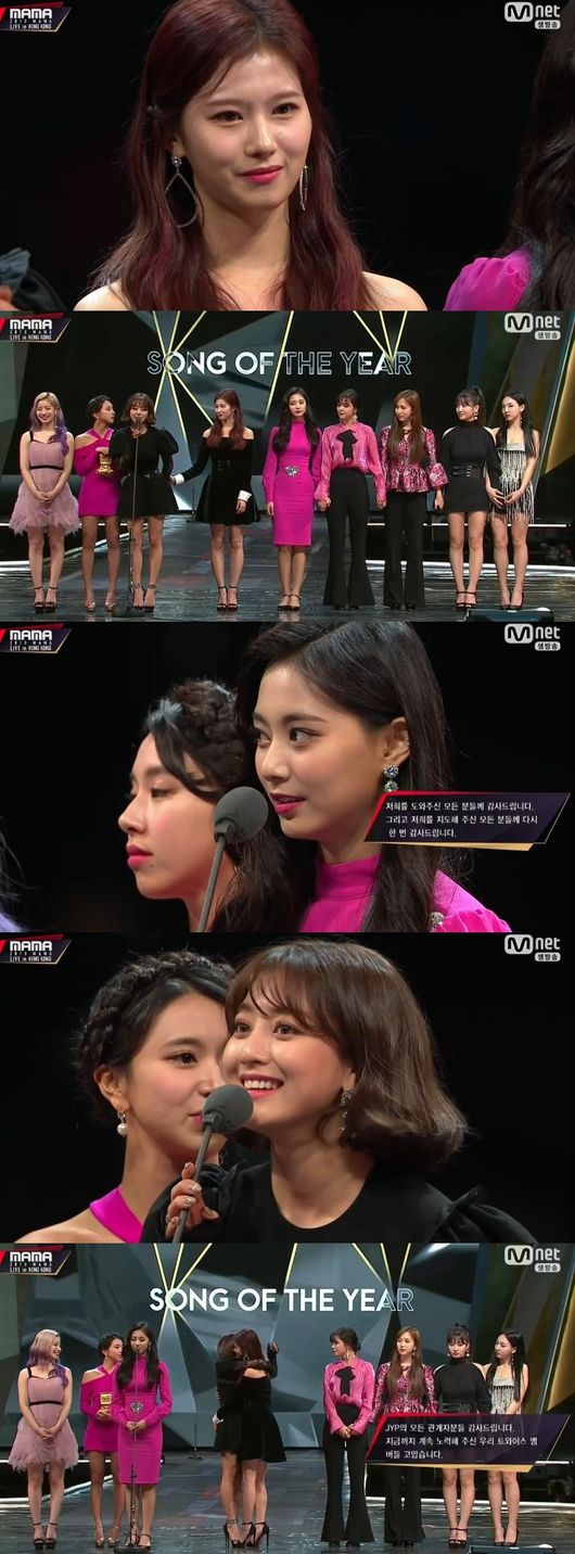 그룹 트와이스가 'MAMA(Mnet Asian Music Awards)' 3년 연속 대상 위업을 쌓았다. 걸그룹으로 또 하나의 역사를 쓰고 있는 이들은 팬들을 향한 고마운 마음을 전하며 자랑스러운 가수가 되겠다는 약속을 했다.