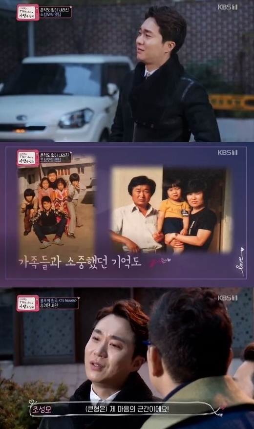 'TV는 사랑을 싣고' 조성모가 20년간 숨겨둔 가슴 아픈 가정사를 공개했다. 데뷔 전 안타깝게 세상을 떠난 큰형을 향한 그리움을 털어놓으며 눈물을 흘렸다.