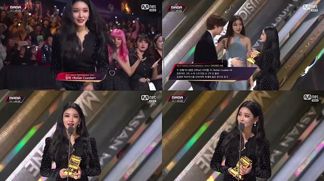 지난해 일본에서 개최된 ‘2017 MAMA’에서 골든루키상을 수상했던 청하는 이날 베스트 댄스 퍼포먼스 솔로 부문 수상자로 호명되며, 2년 연속 ‘MAMA’ 트로피를 손에 넣는 기쁨을 맛봤다.